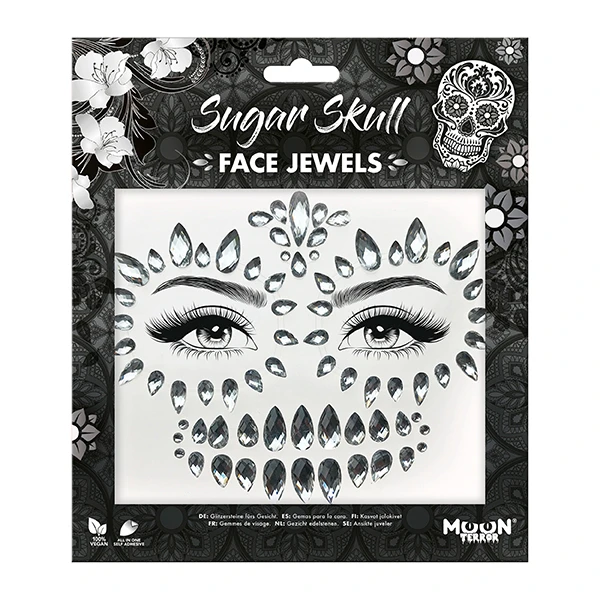 Faites sensation et épatez la foule d’Halloween ou du festival en mettant en valeur votre visage avec des grappes de pierres précieuses scintillantes.