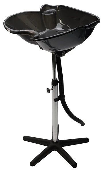 Lave-tête couleur noir fumé avec cuvette inclinable semi-profonde en ABS résistant aux chocs, protège-nuque en